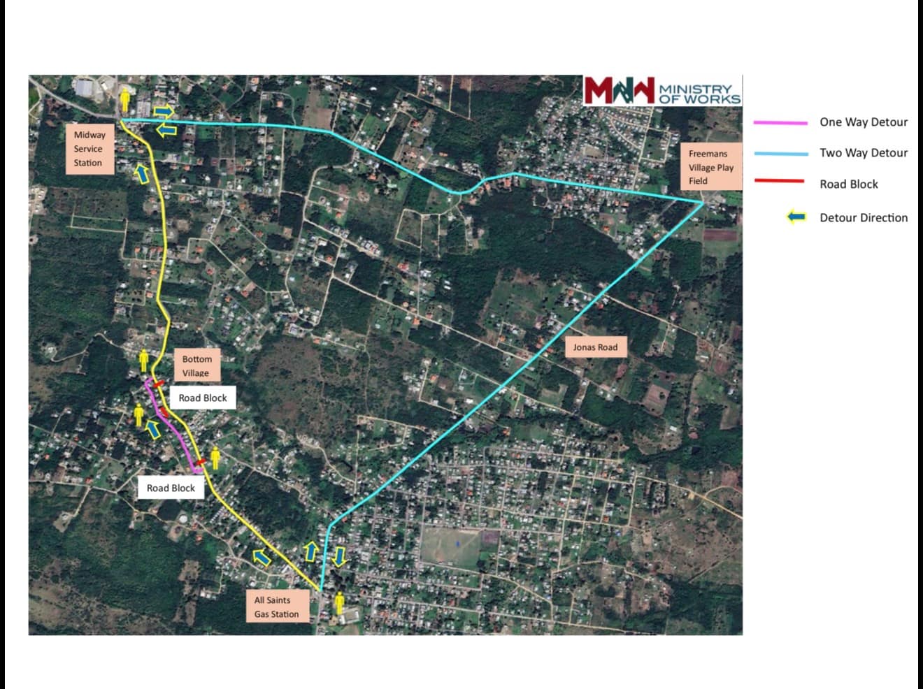 NOTICE: DETOUR AT MIDWAY SERVICE STATION AND ALL