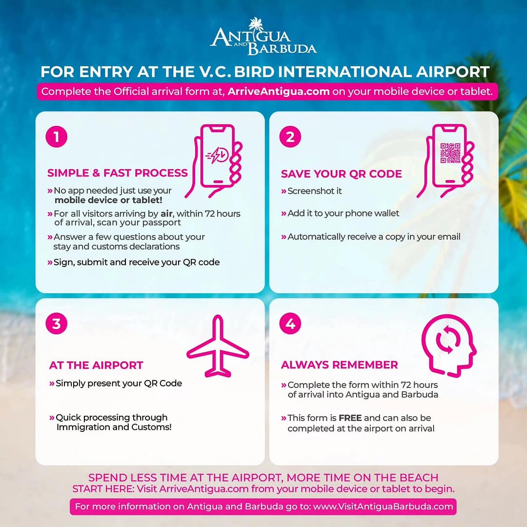 The ArriveAntigua Electronic arrival system is only available for completion on your personal mobile device or tablet