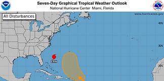 One of two disturbances now with a 70 percent chance of...