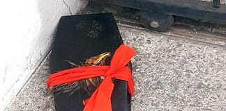 TRINIDAD-Coffin with severed chicken head found outside court building