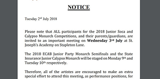NOTICE: Meeting for the upcoming Junior Soca and Junior Calypso Monarch...