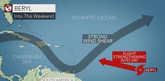 Tropical Storm Beryl may not survive trip into Caribbean