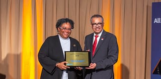 PM Mottley presented with WHO award for exceptional leadership in health