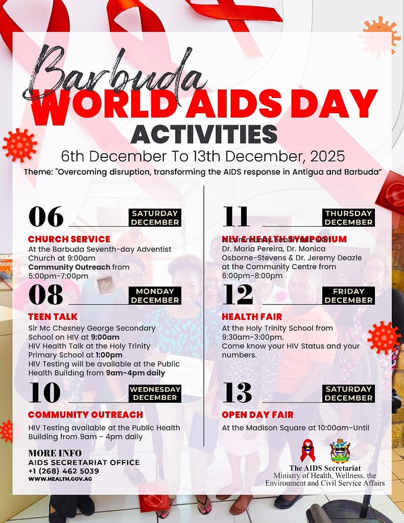 Barbuda will host six days of activities beginning Saturday as the National AIDS Programme and the AIDS Secretariat move to the sister island for the Barbuda leg of World AIDS Day observances.