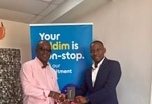 Wayne Hull, Country Manager of Flow Antigua and Barbuda, presents a Samsung S25 smartphone to cricket legend Sir Richie Richardson in support of the...