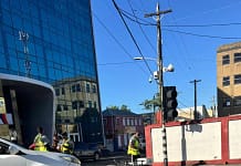 Police briefly diverted resources from an early-morning route march in St John’s on Saturday after a car collided with a parked police motorcycle on...