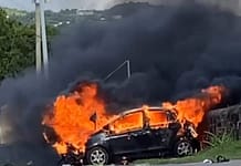 REAL NEWS: The Traffic and Fire Departments are investigating an accident involving a Vitz motor car that burst into flames after flipping several times.