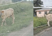 A cow stands along Freemans Village Main Road, where residents say roaming livestock frequently create dangerous conditions for motorists. Calls have been made for...