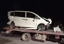 Three people were hospitalized after a Honda Stepwagon crashed into a lamp post on Friars Hill Road...