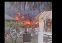 A dramatic video circulating on social media shows a water sports facility on Galleon Beach engulfed in flames.