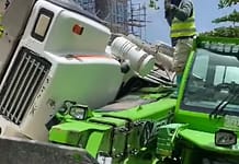Driver escapes serious injury when cement-mixer truck overturns onconstruction site at Sugar Ridge