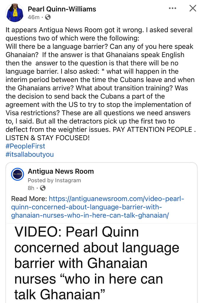 A video of Pearl Quinn-Williams’ remarks at a United Progressive Party rally has gone viral, prompting her to accuse Antigua News Room of misrepresentation. The footage below shows her comments exactly as delivered, allowing viewers to hear the remarks that sparked the backlash and her subsequent response.