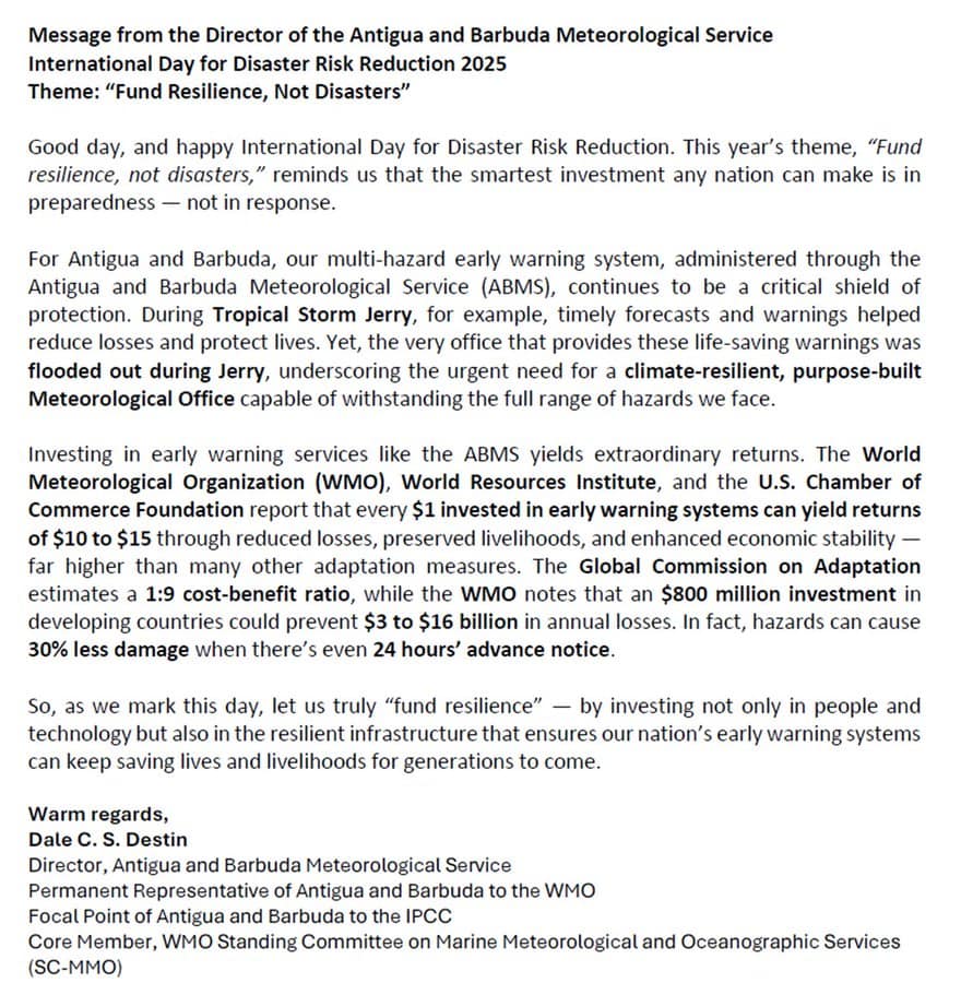 Message from the Director of the Antigua and Barbuda Meteorological Service