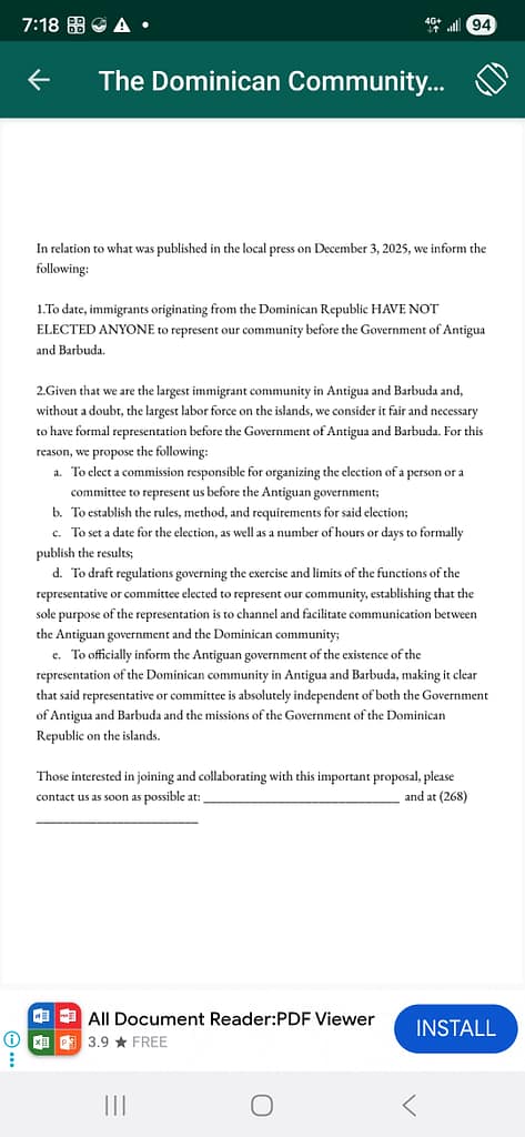In a statement issued in response to reports published in the local press on 3 December 2025, the group said its members “have not elected anyone to represent our community before the Government of Antigua and Barbuda”.