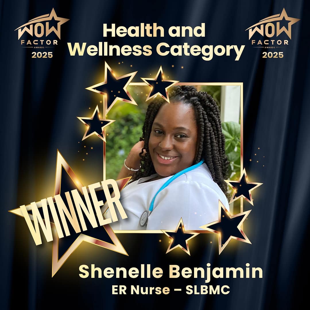 Shenelle Benjamin, an Emergency Room Nurse at the Sir Lester Bird Medical Centre (SLBMC), has been named the winner in the Health and Wellness Category at the 2025 WOW Factor Awards.