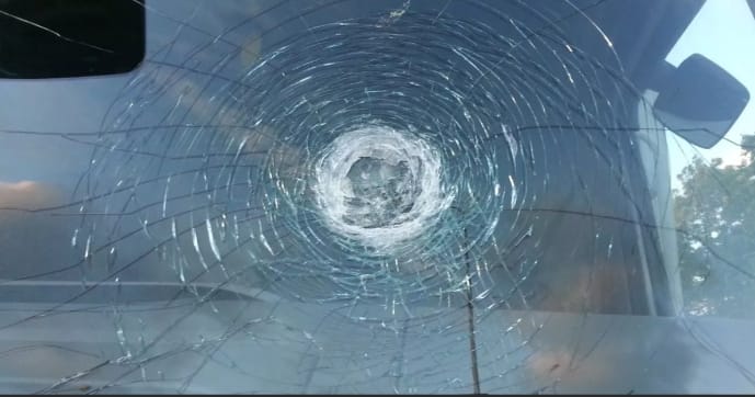 The incident happened around 8:30 a.m. on Sunday, 5 October, when two stones were allegedly hurled at a blue Toyota Yaris, damaging the vehicle.