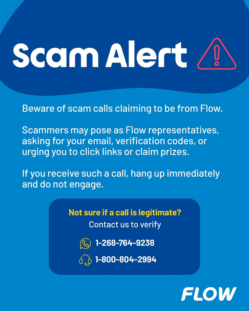 Telecommunications provider Flow has issued a public warning about an increase in scam calls targeting customers in Antigua and Barbuda.