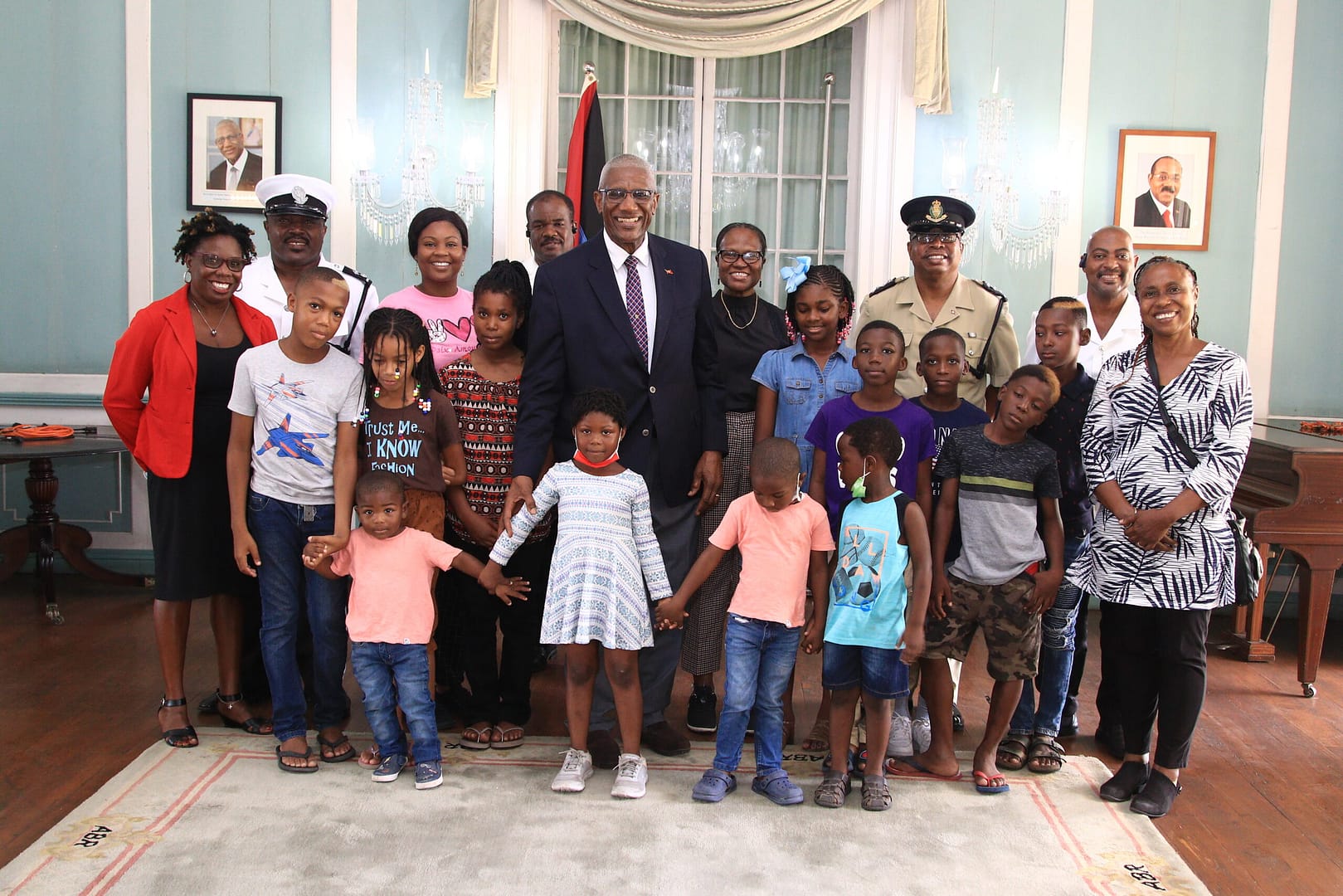 A group of young participants in the Silston Library Summer Camp, which is being held to revive reading among the younger population as well as draw attention of the public for the need to restore the Silston Library, were recently welcomed to Government House by the Governor General, His Excellency Sir Rodney Williams.