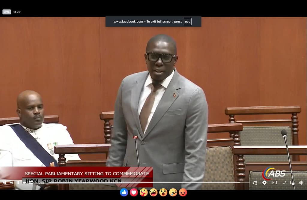 Sir Robin Yearwood entered Parliament this morning for a special sitting commemorating his 50th anniversary as a Member of Parliament.