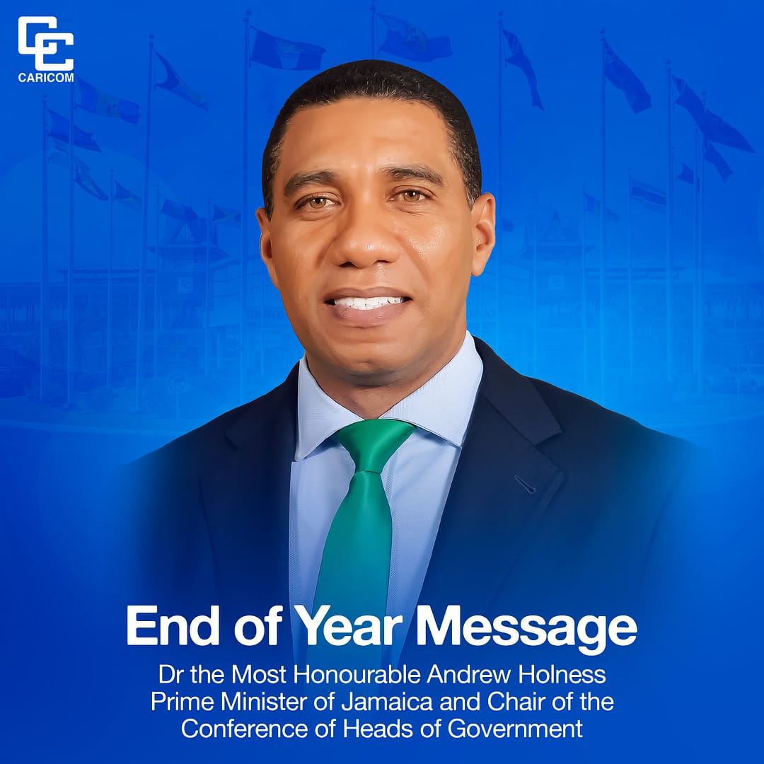 The End of Year Message from the Outgoing Chair of the Caribbean Community (CARICOM) Dr the Most Honourable Andrew Holness, Prime Minister of Jamaica:Colleague Heads of Government, and Distinguished Citizens of the Caribbean Community (CARICOM),It has been an immense honour for Jamaica to serve as Chair for the second half of this year.