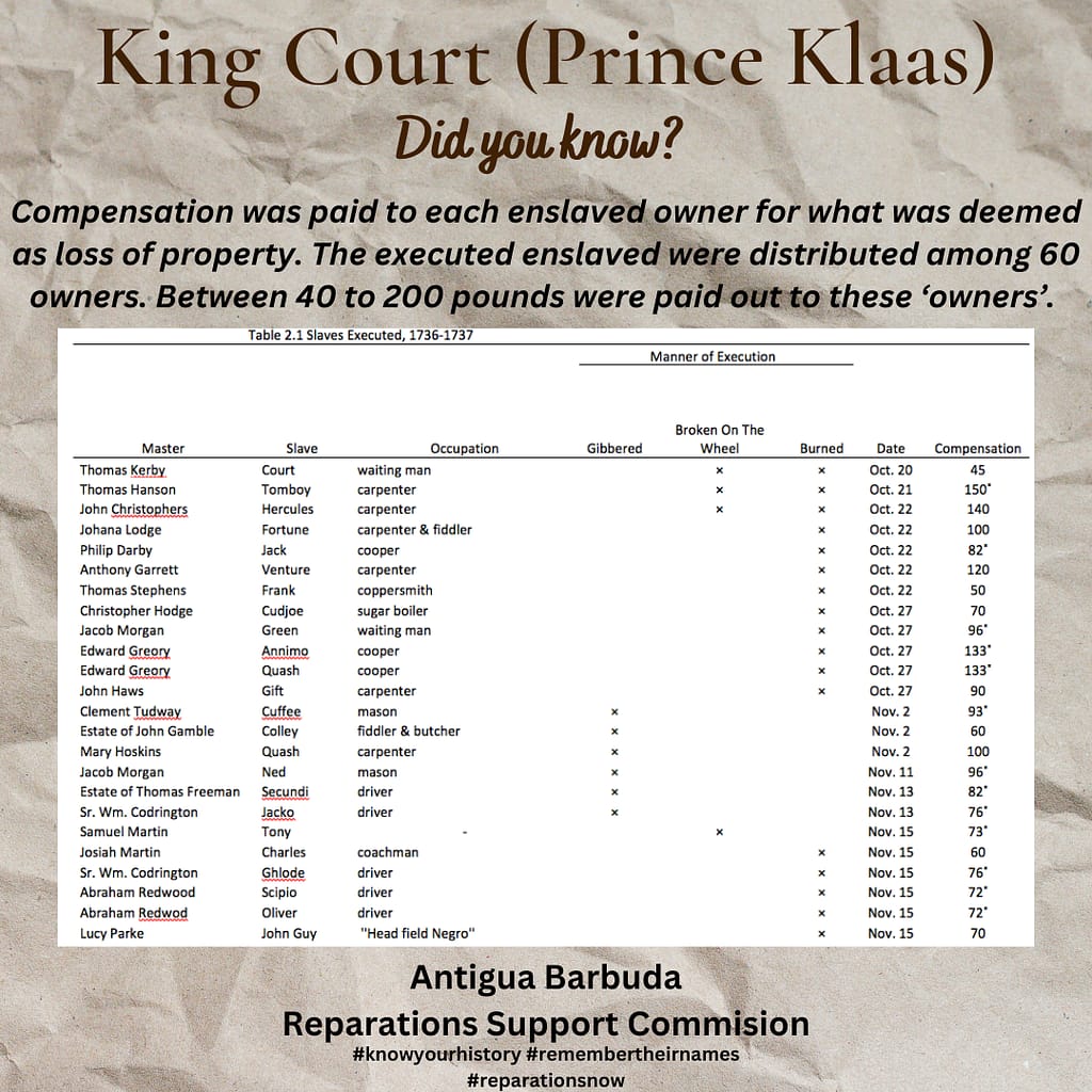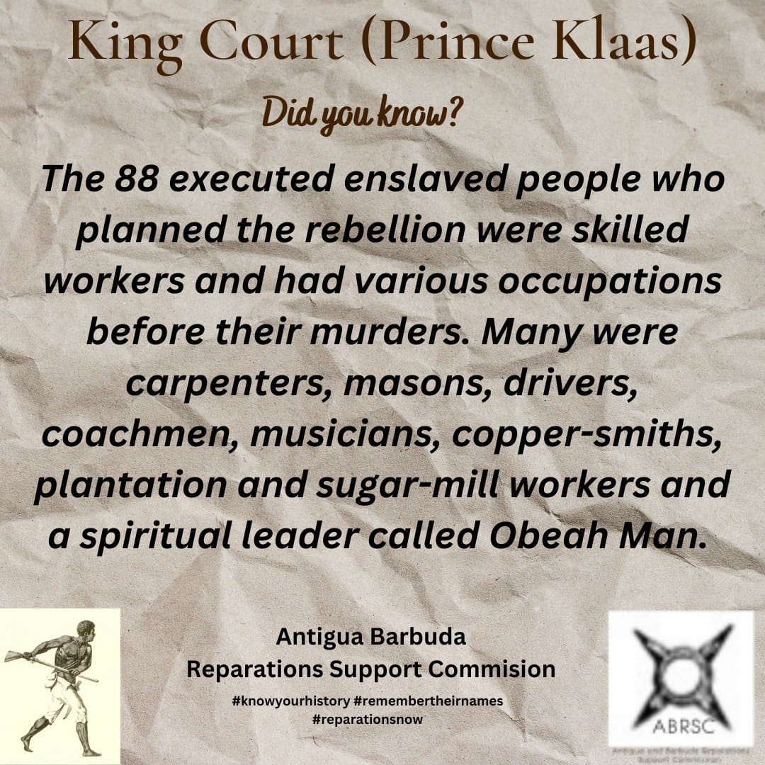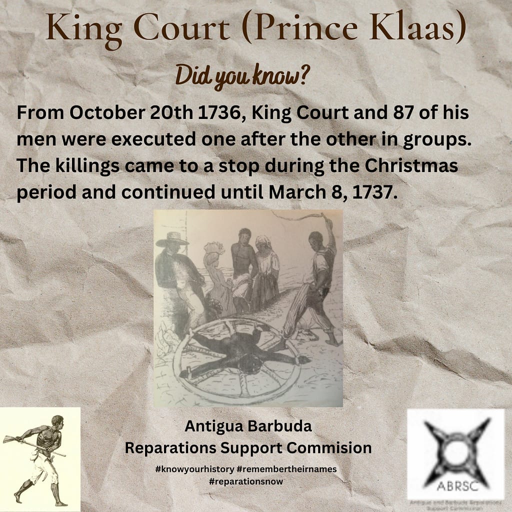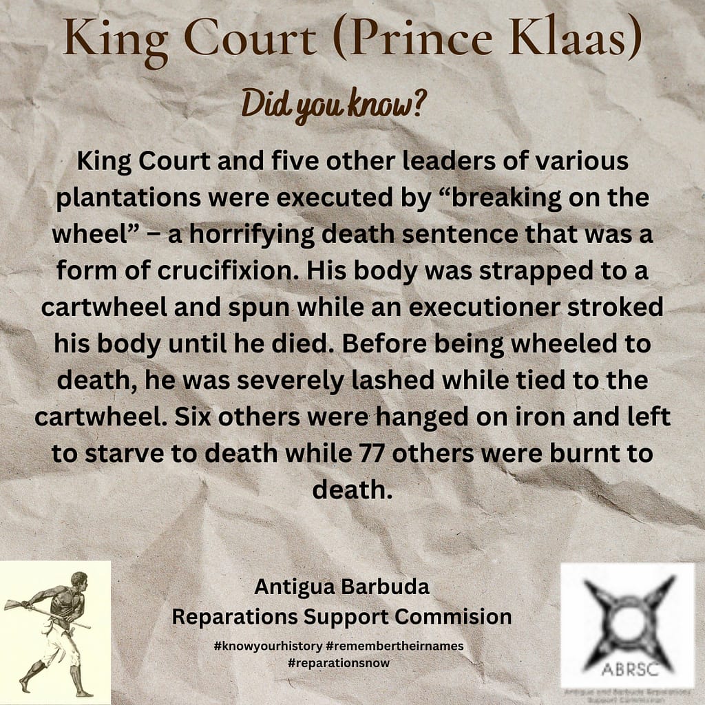 The Antigua and Barbuda Reparations Support Commission (ABRSC) remains steadfast in ensuring that the stories of King Court and his compatriots are not lost to time. We affirm our commitment to truth-telling, public education, and advocacy for reparatory justice, for the generations that came before us, and those yet to come.