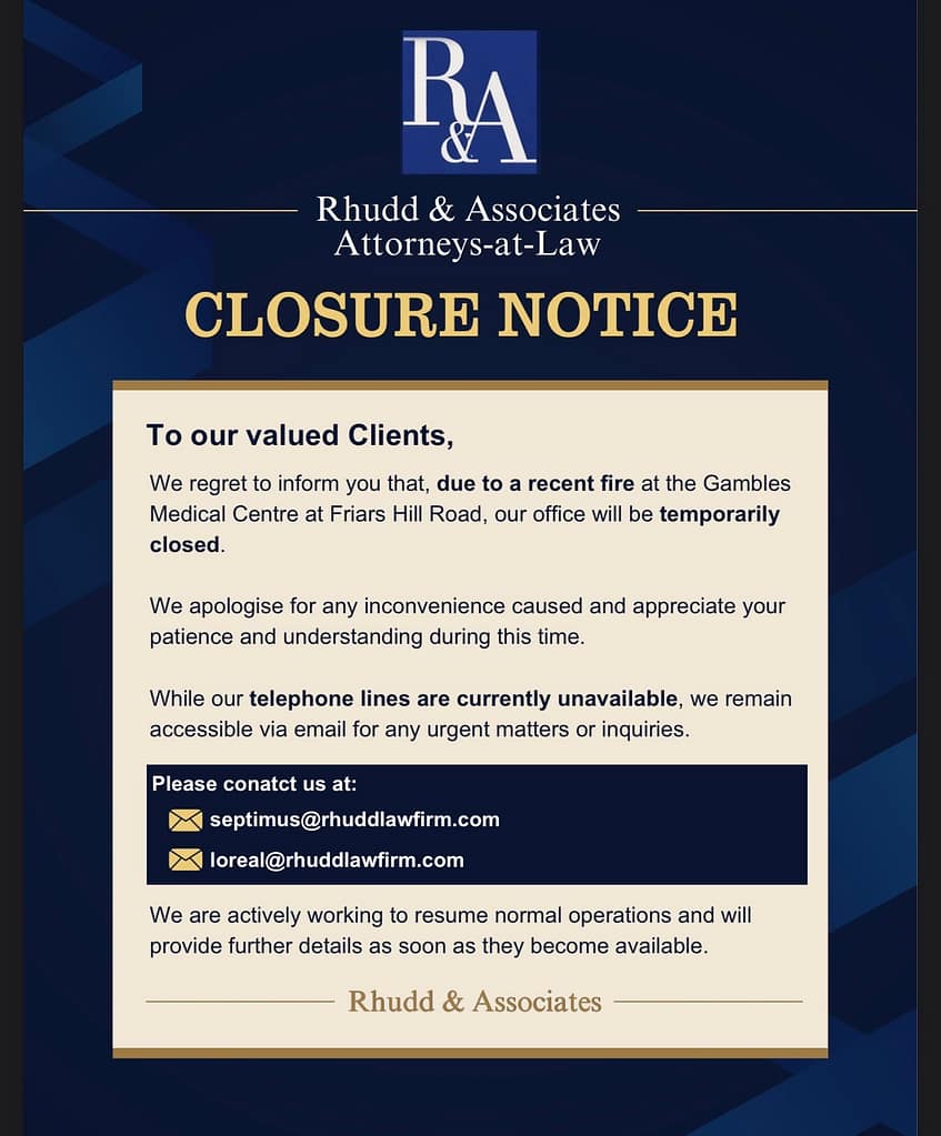 IMPORTANT CLOSURE NOTICE: Rhudd & Associates