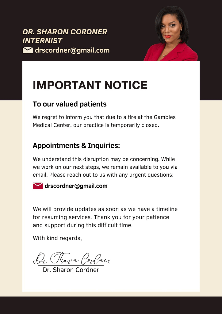 IMPORTANT NOTICE: From Dr. Sharon Cordner