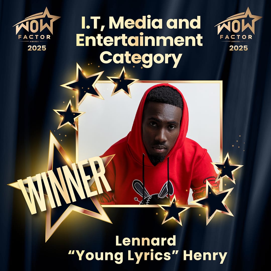 Lennard Henry, widely known by his stage name Young Lyrics, has been named the winner of the I.T., Media and Entertainment category at the 2025 WOW Factor Awards.