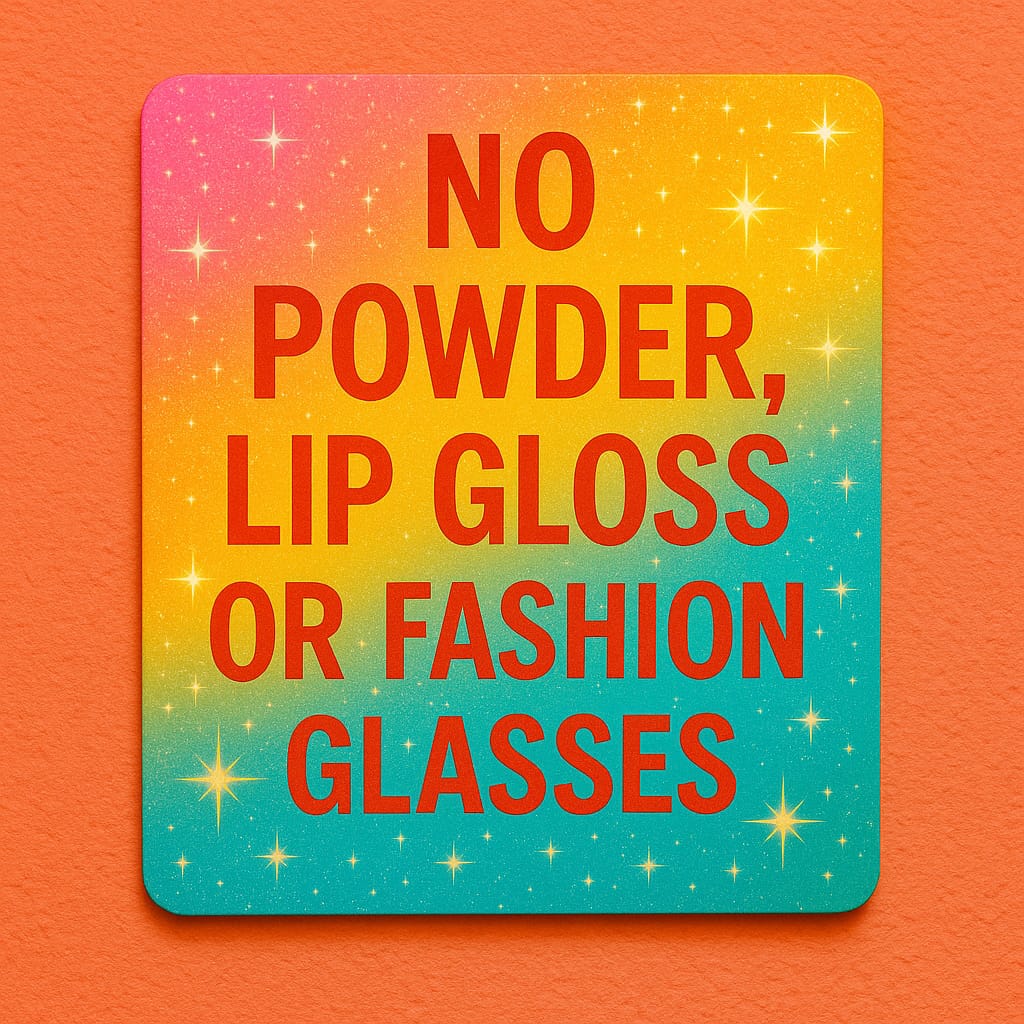 No powder, lip gloss, or fashion glasses
