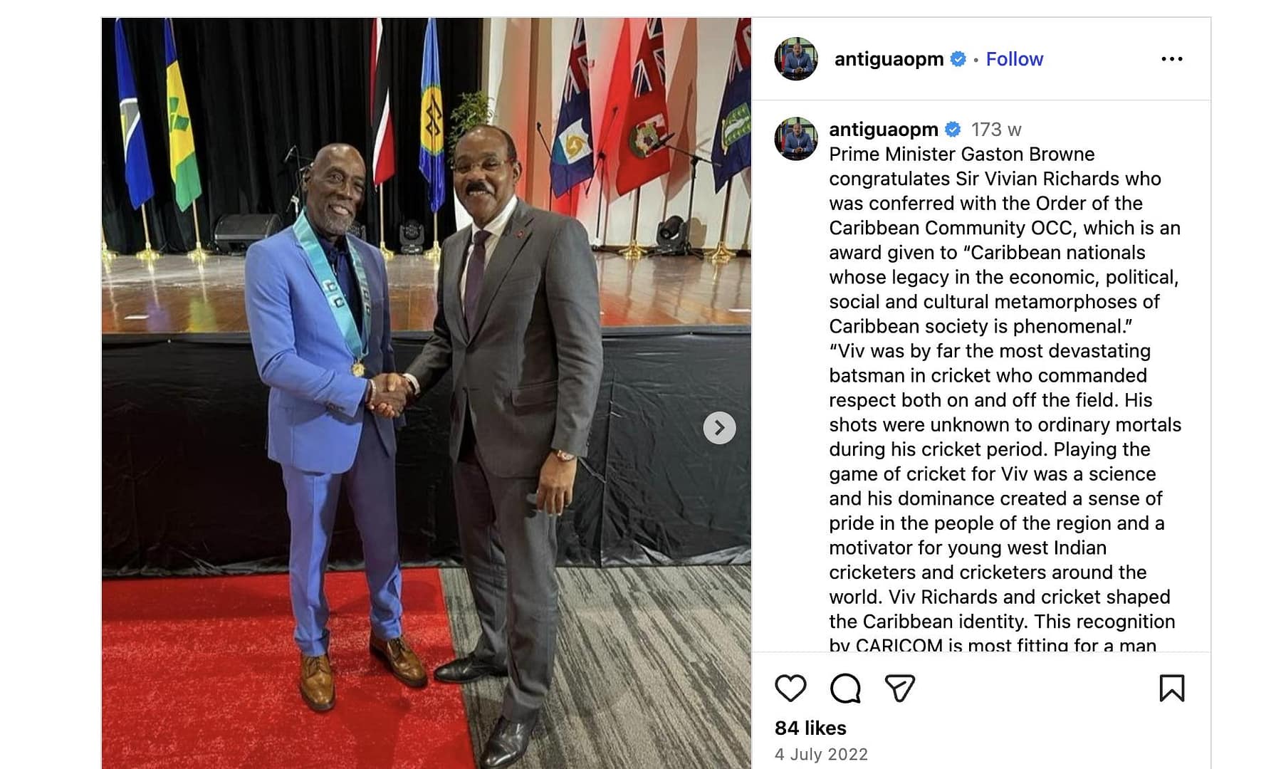 Now tell me. What was political in what our National Hero, Sir Viv said. Not one damn thing. Asking for an enquiry is the best thing. Cuz it’s only he said n she said we hearing. We have become the laughing stock of the world now n people still playing DAMN POLITICs. Take good look at us and where we stand now. OMG. Common sense like it does not prevail round here at all. #Chaman!!!