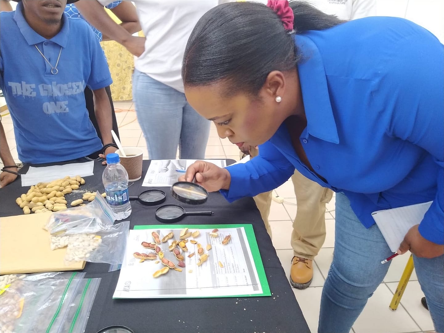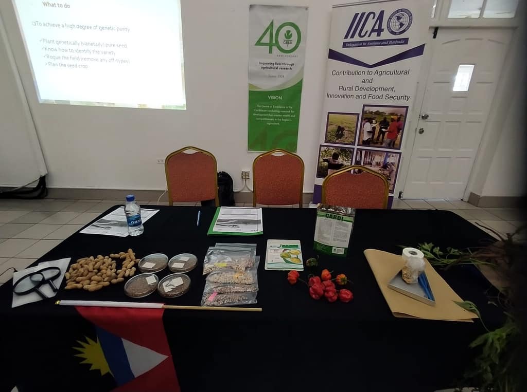 Facilitating the session was Mr. Junior Greene, CARDI’s Representative for Antigua, Barbuda and Montserrat. The principal lecturer was Ms. Omaira Avila Rostant, Biotechnologist at CARDI Belize, who led technical modules on seed production fundamentals, seed drying and processing, post-harvest handling, viability testing, and methods to protect varietal integrity. Ms. Rostant’s practical demonstrations emphasized hands-on techniques suitable for national and community seed systems, including simple, low-cost approaches that can be deployed rapidly after a disaster.