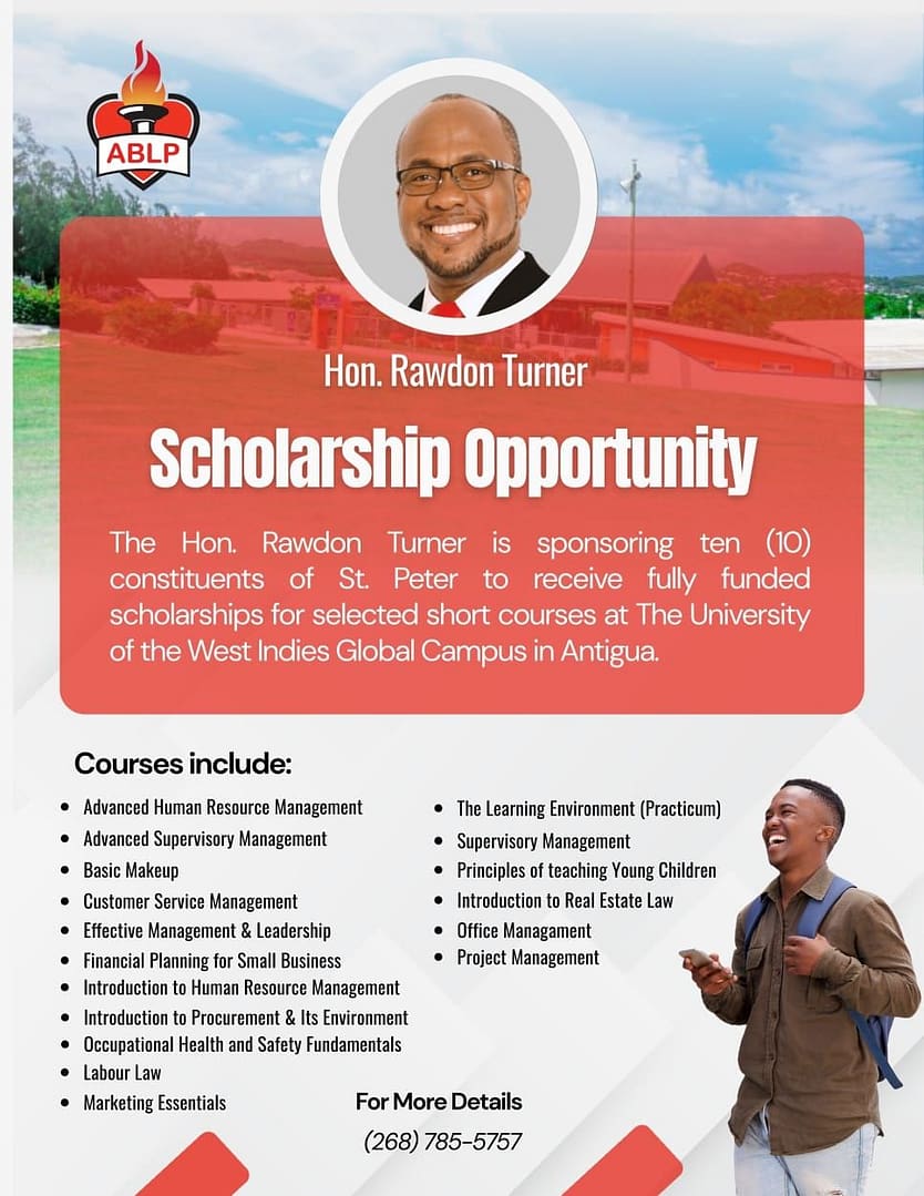St. Peter MP Rawdon Turner is offering 10 fully funded scholarships for residents of the constituency to pursue short courses at the UWI Global Campus in Antigua.