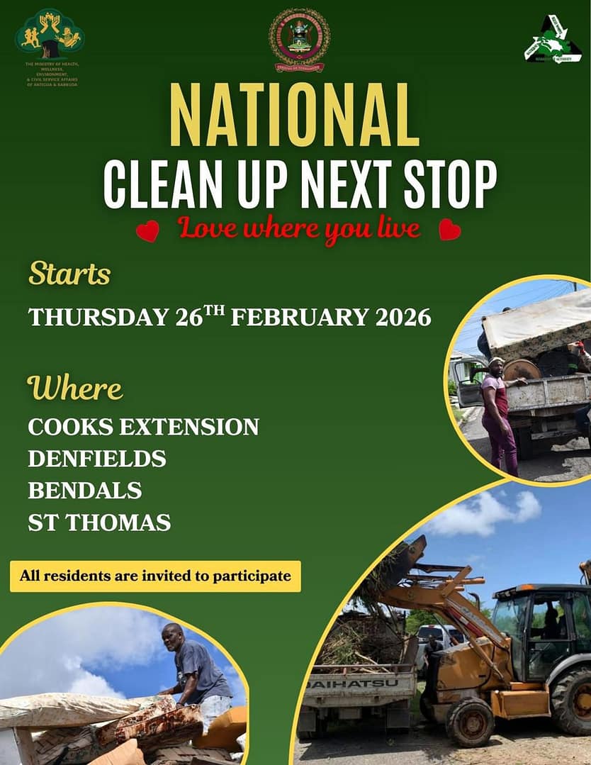 The National Clean-Up campaign forms part of a broader effort to improve community sanitation, address illegal dumping and promote civic pride across Antigua and Barbuda. Officials have repeatedly called on residents to participate actively in maintaining cleaner neighborhoods.