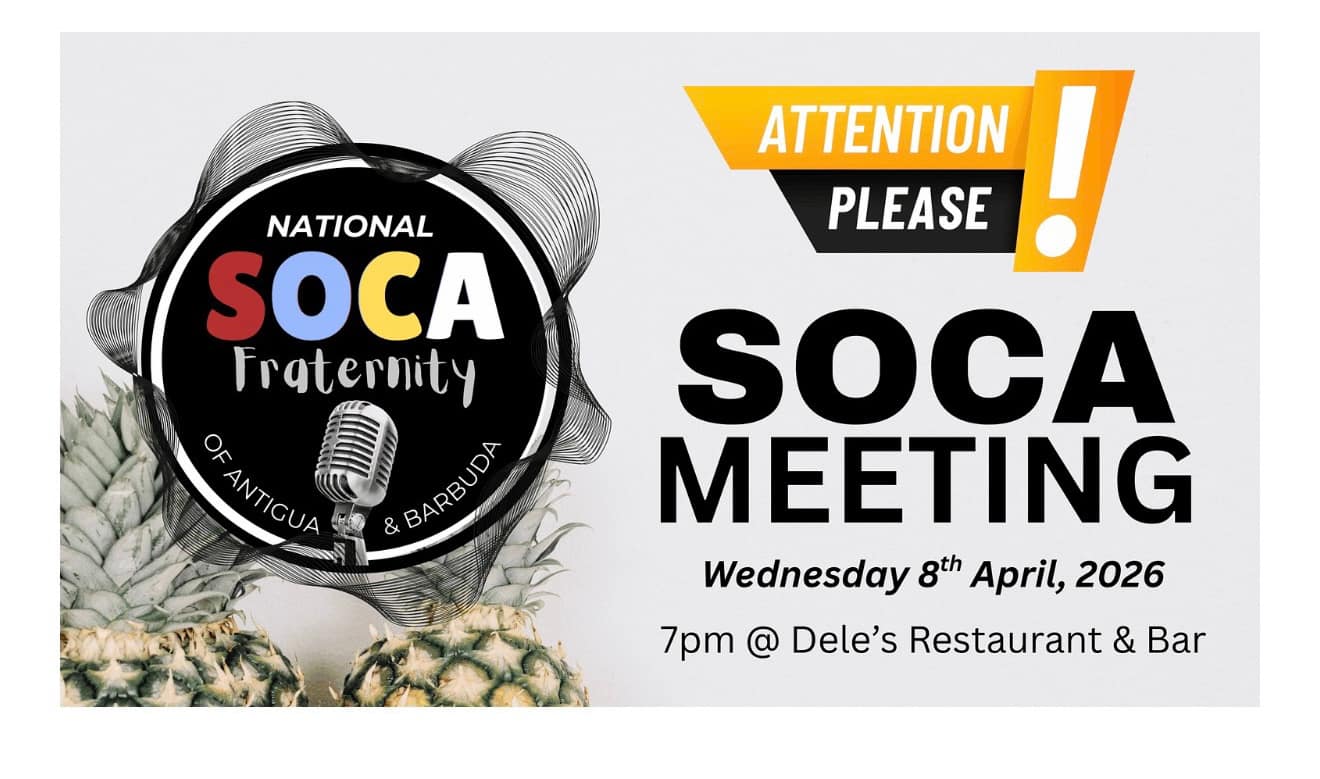 The National Soca Fraternity of Antigua and Barbuda is inviting all soca artists and soca stakeholders to attend an upcoming general meeting scheduled for Wednesday 8th April at 7:00 p.m. at Dele’s Restaurant and Bar.