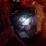 An early morning accident has left a woman in the hospital and her car partially burnt.