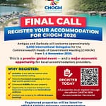 ST. JOHN’S, Antigua — Authorities are urging accommodation providers to register their properties for the 2026 Commonwealth Heads of Government Meeting (CHOGM), as the...