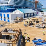Work continues to progress on the Antigua Cruise Port’s upland development, with new construction underway on key features aimed at enhancing the visitor experience.