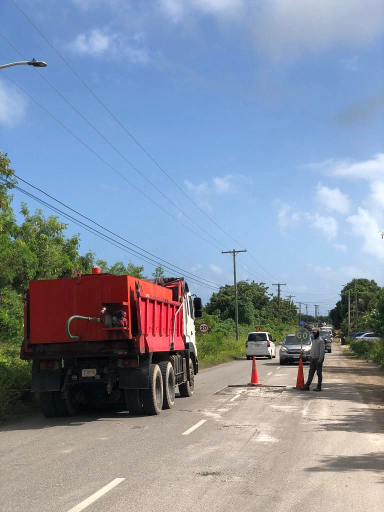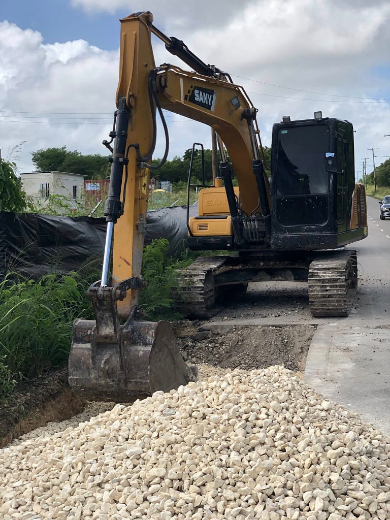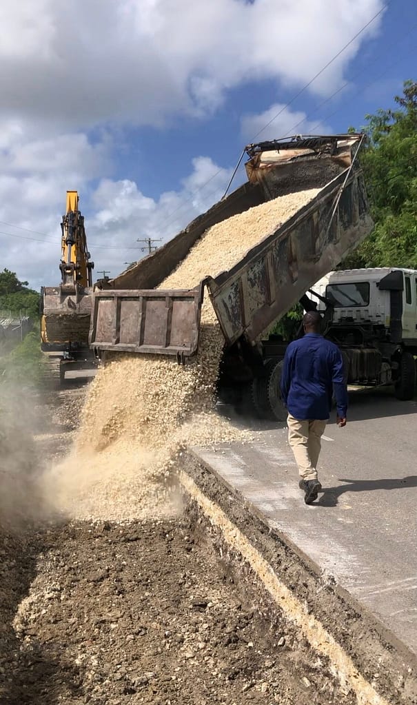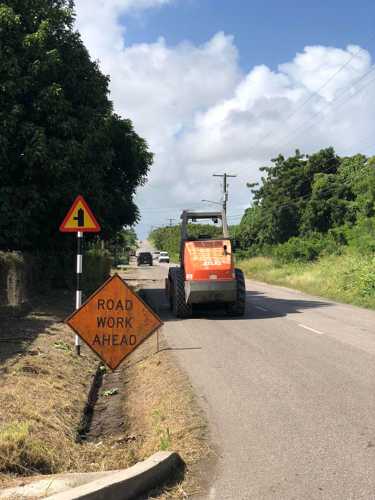 C.O. Williams Ltd. (Antigua) continues asphalt preparation and repair works along the Sir Sydney Walling Highway in Pares Village.