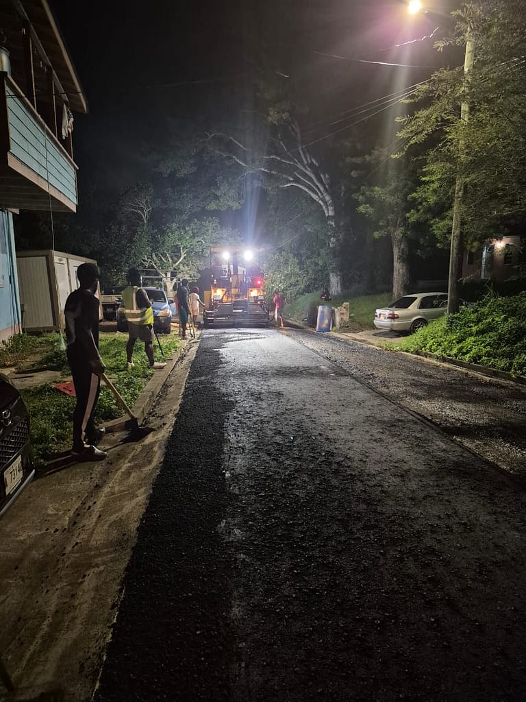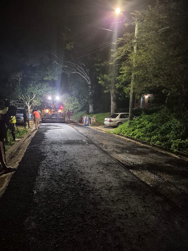 Crews continue late-night asphalt paving in Liberta as part of ongoing efforts to improve road infrastructure and enhance community access.