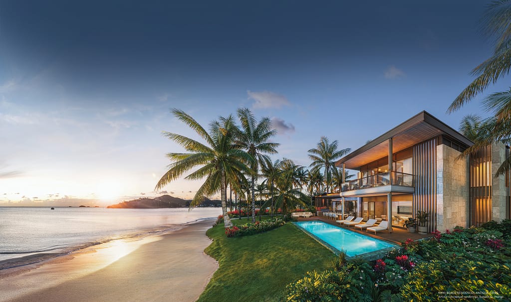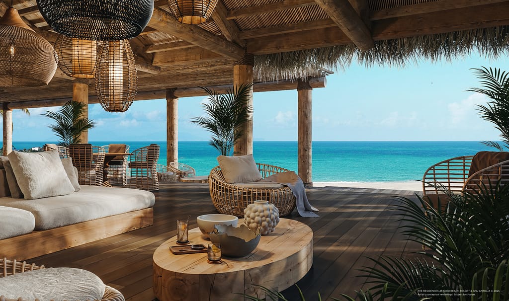 Designed by HKS Architects in collaboration with ROAM Interior Design, the development blends contemporary design with natural Caribbean textures. Each residence and villa is crafted to highlight sweeping ocean views, abundant natural light, and a seamless indoor-outdoor experience inspired by Antigua’s white sands and turquoise waters.