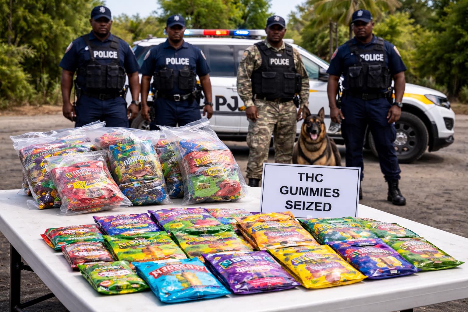 At approximately 2:00 p.m., on Friday, officers attached to the Narcotics, K-9 Unit, and the Customs Enforcement Unit, executed a search warrant at a premises along Sir George Walter Highway, and seized forty-five (45) packs of THC-infused gummies.