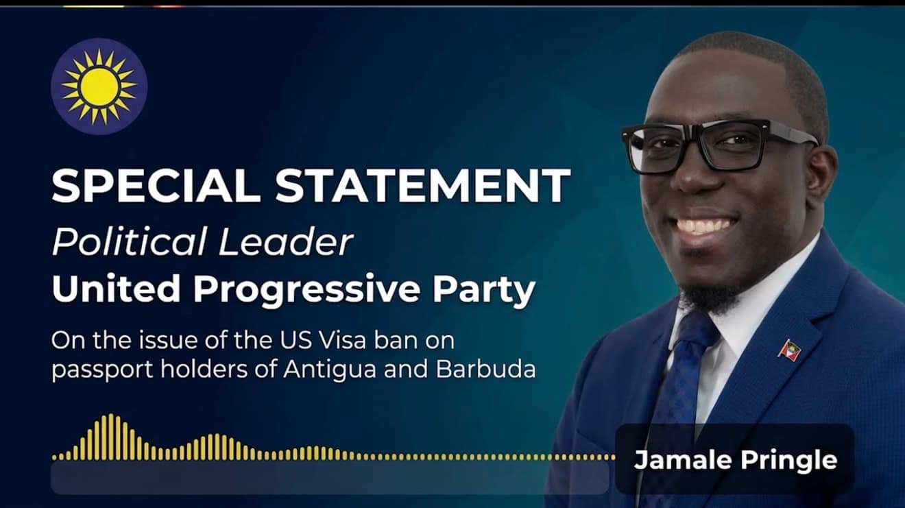 Opposition Leader Jamale Pringle says a United Progressive Party government would move swiftly to address new U.S. visa restrictions affecting Antiguan and Barbudan nationals, describing the situation as a national emergency impacting families, businesses and the wider economy.