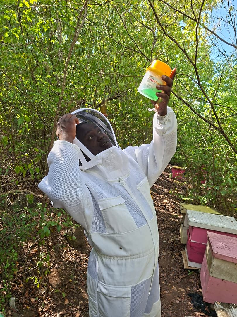 As recent as 6th to 16th Mr. John Frederick, a Queen Bee breeder and consultant from St. Lucia visited the twin-island working in the fields with the beekeepers observing and sharing valuable tips pertaining to apiary management, early detection of the Varroa mite, mitigation and eradication.
