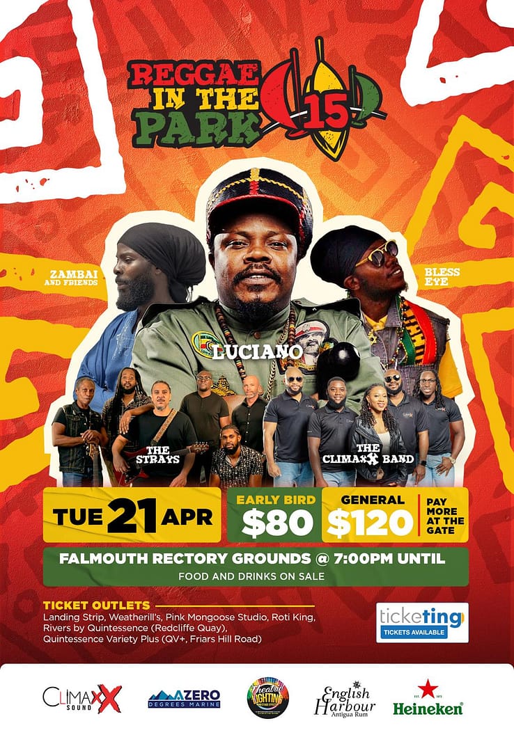 One of Antigua and Barbuda’s most eagerly awaited musical events is making a return. Reggae in the Park 15, organized by Climaxx, will be held on Monday, 21 April 2026, at 7:00 p.m. promptly at the Falmouth Rectory Grounds, offering an unforgettable evening of live acts, genuine reggae culture, and signature island vibes.