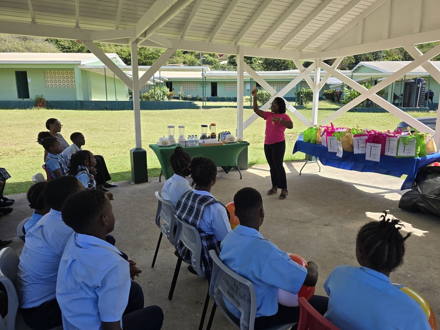 Nutritionist Ms. Charity Dublin led an interactive discussion with students on the importance of balanced meals and understanding the different food groups. She demonstrated how simple, healthy smoothies, banana chocolate and banana vanilla, can serve as nutritious alternatives to sugary snacks. Students sampled the smoothies and responded enthusiastically to the healthier options.