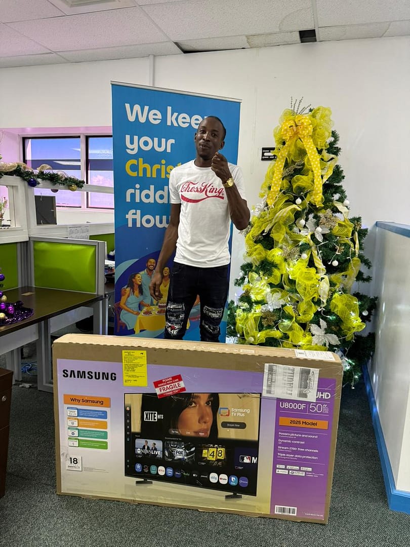 - Kenroy Browne will enjoy the ultimate viewing experience on his 50-inch Samsung TV.