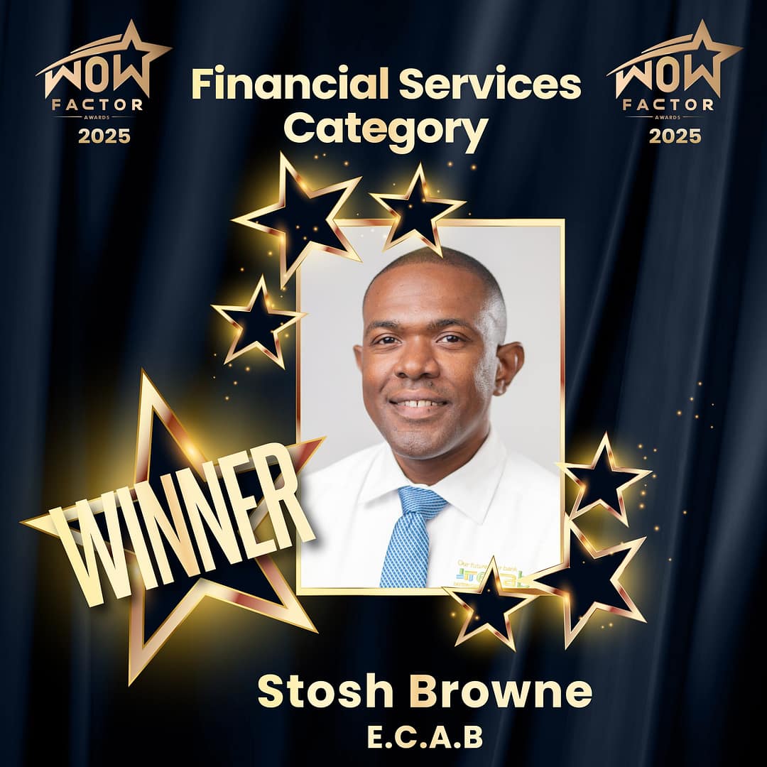 Stosh Browne of the Eastern Caribbean Amalgamated Bank (E.C.A.B) has been named the winner in the Financial Services category at the 2025 WOW Factor Awards.
