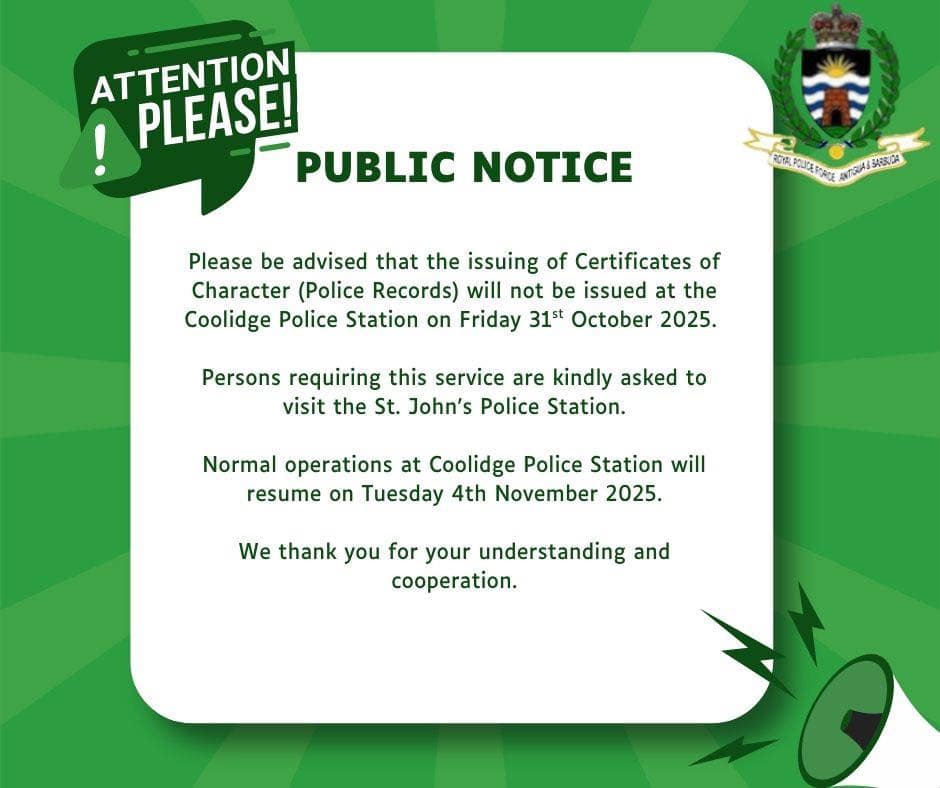 Persons requiring this service are kindly asked to visit the St. John’s Police Station.