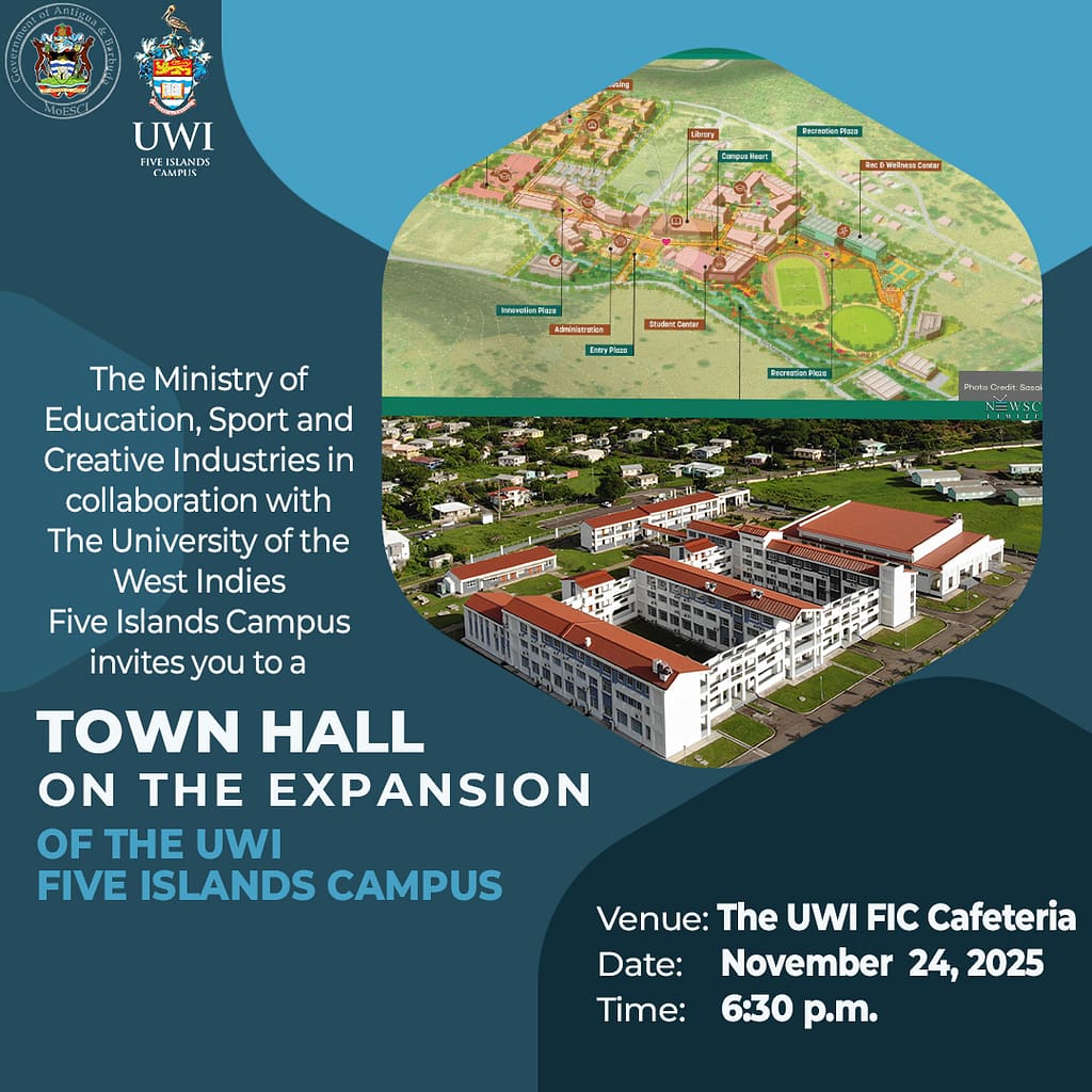 The UWI Five Islands Campus, Antigua and Barbuda, Tuesday, November 18 2025. — The Ministry of Education is inviting members of the public to attend a town hall meeting to discuss the upcoming Phase I expansion of University of the West Indies Five Islands Campus.