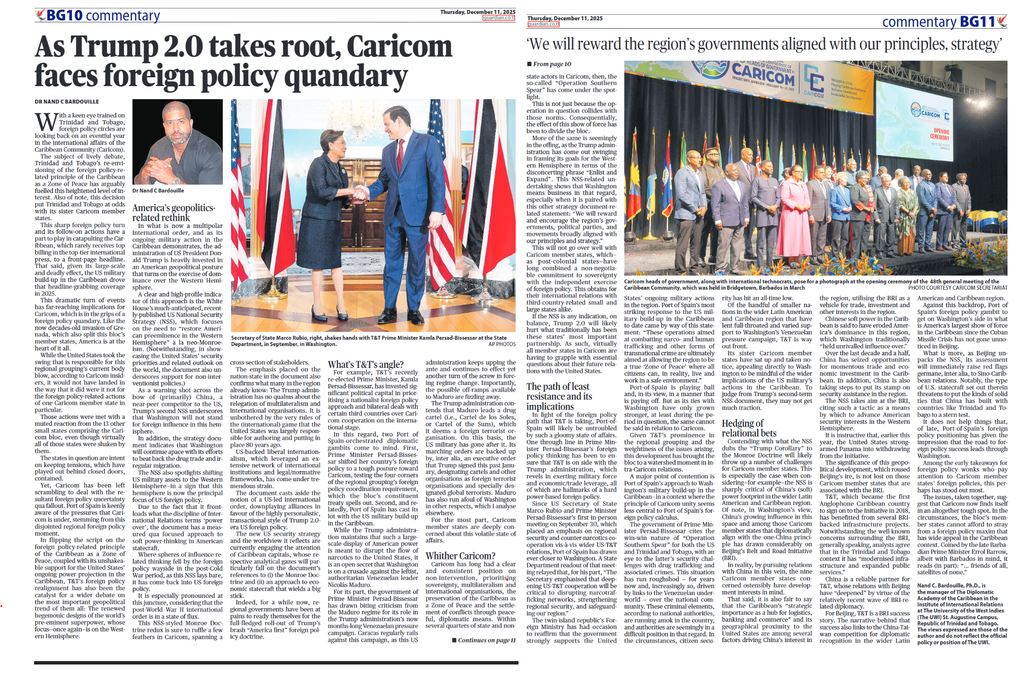 - ‘As Trump 2.0 Takes Root, CARICOM Faces Foreign Policy Quandary’. Trinidad and Tobago Guardian (December 11, 2025).